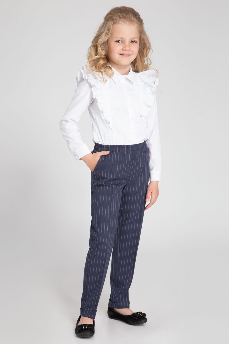| 34 (140 см) | Брюки: Высота посадки - 21см, Длина брюк с поясом - 85см, Длина по внутреннему шву - 54см, Ширина брючин сверху - 50см, Обхват брюк по низу - 30см, Ширина по бедрам - 42см, Ширина по талии - 30см; |