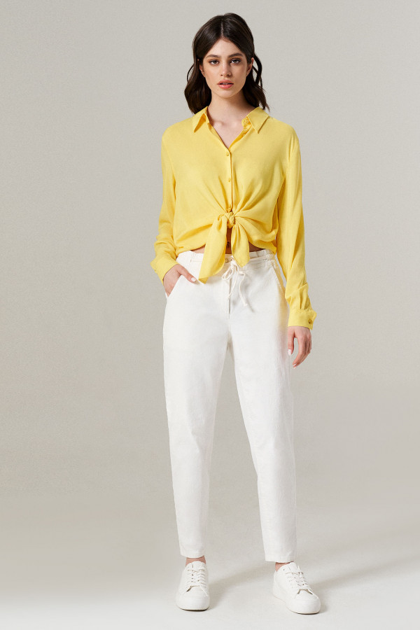 Воротник отложной пиджачного типа. По краю воротника и борта имеется кант.