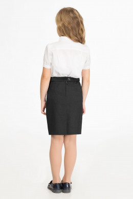 Юбка для девочки прямого силуэта на поясе. По поясу имеется резинка с регулятором. По переду горизонтальная кокетка и декоративный бантик. По спинке вытачки и шлица.