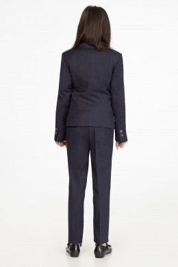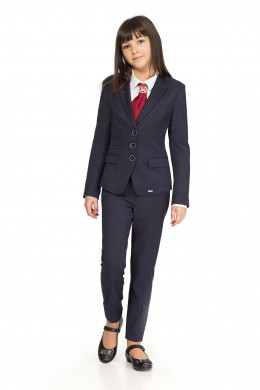 Жакет для девочки полуприлегающего силуэта с центральной застежкой на три петли и пуговицы, с V-образным вырезом горловины, с втачными рукавами.