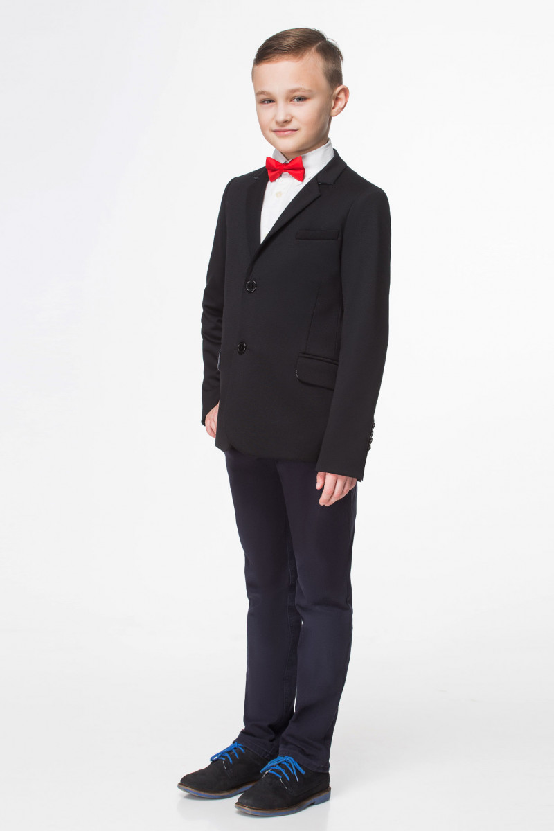 Строгий пиджак для мальчика из трикотажного полотна на вискозной подкладки.