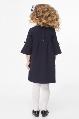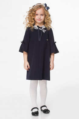 Стильное платье для девочки младшего школьного возраста выполнено из качественного материала на вискозной подкладки. Платье отрезное под грудью, с застежкой на спинке на четыре петли и пуговицы. Юбка платья расширенная, со встречной глубокой складкой по переду и небольшой сборкой по шву притачивания юбки к лифу платья. Рукава втачные, длиной ниже локтя. Низ рукава с декоративным воланом со складками. Платье дополнено большим бантом по горловине и маленькими бантиками на рукавах, создавая нарядный образ данной модели. В таком платье ребенок будет выглядеть неотразимо, и при этом чувствовать комфортно.
