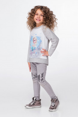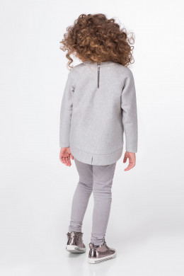 Стильный удлиненный джемпер для девочки из теплого трикотажа с блеском. Джемпер с длинными рукавами, спинка удлиненная, горловина круглая, застежка на металлическую молнию по спинки. По переду нанесен яркий рисунок. Такой джемпер отлично сочетается с леггинсами или джинсами, создавая модный комфортный образ вашему ребенку.