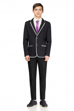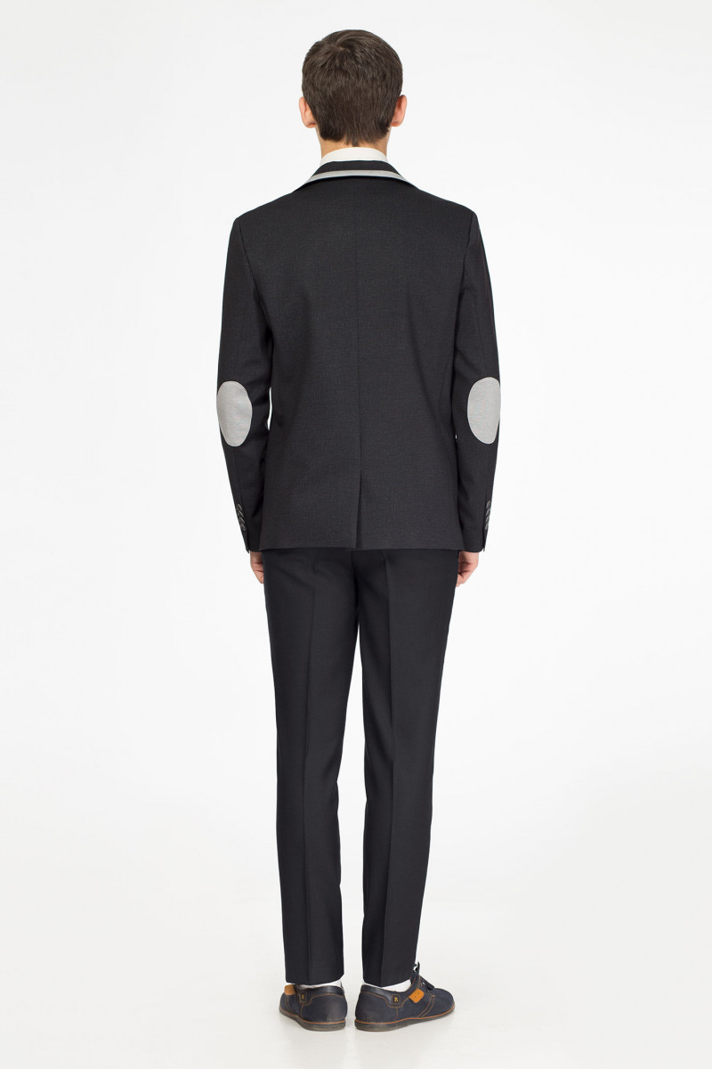Классические брюки для мальчика из полушерстяной костюмной ткани. Брюки на талии, прямого силуэта, с притачным поясом. Брюки с застежкой на одну петлю и пуговицу на поясе, и тесьму-молнию по переду. По поясу расположены шлевки.