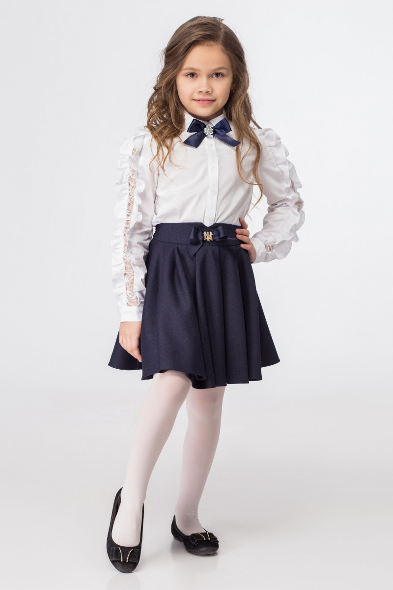 Блузка для девочки нарядная, из смесовой сорочечной ткани с изящным французским кружевом.