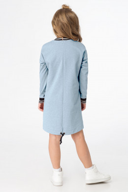 Платье для девочки выполнено из хлопкового трикотажного полотна в сочетании с оригинальными довязами по горловине и по низу рукавов. Платье прямого силуэта, с карманами по переду, с длинными рукавами, с застежкой на потайную молнию по спинки. Низ платья фигурной формы. Платье дополнено рисунком по переду.