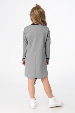 Платье для девочки выполнено из хлопкового трикотажного полотна в сочетании с оригинальными довязами по горловине и по низу рукавов. Платье прямого силуэта, с карманами по переду, с длинными рукавами, с застежкой на потайную молнию по спинки. Низ платья фигурной формы. Платье дополнено рисунком по переду.