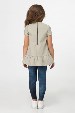 Нарядная туника для девочки из плотной с блеском ткани на хлопковой подкладки. Туника расширенного силуэта с объёмной рюшей по низу. Туника с круглым вырезом горловины, с короткими рукавами со складками. Застежка на декоративную металлическую молнию по спинке. Туника дополнена жемчужными бусинками по горловине.