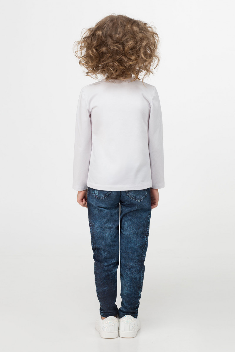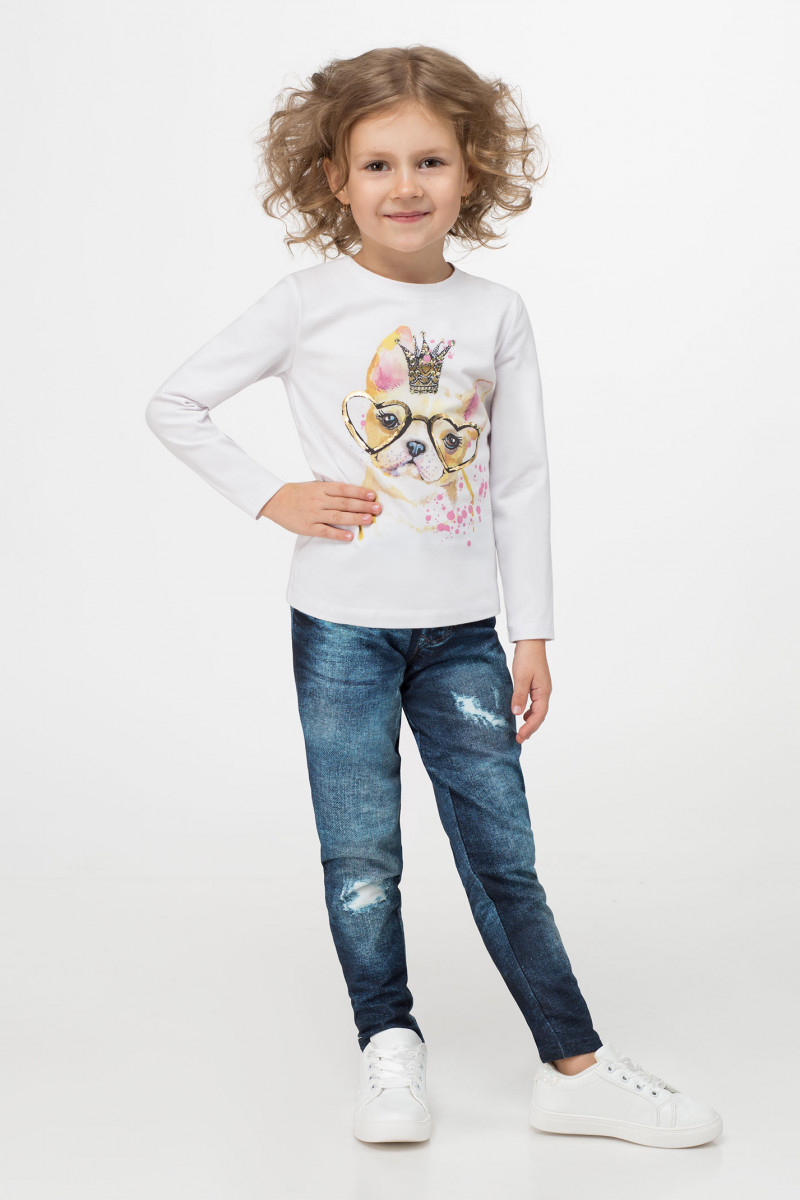 Джемпер для девочки из мягкого хлопкового трикотажного полотна. Джемпер полуприлегающего силуэта, с длинными рукавами, с круглым вырезом горловины. По переду джемпера нанесена яркий рисунок. Такой мягкий интересный джемпер отлично подойдет в сочетании с любимыми джинсами или юбкой, и станет неотемлемой частью детского гардероба.