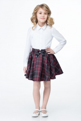 Школьная юбка для девочки из поливискозной ткани с рисунком в клетку. Юбка на притачном поясе, фасона солнце. Передняя часть пояса фигурная, задняя часть пояса на резинке. По переднему полотнищу юбки имеются складки, в боковых швах карманы. Отличный комфортный вариант в школу.