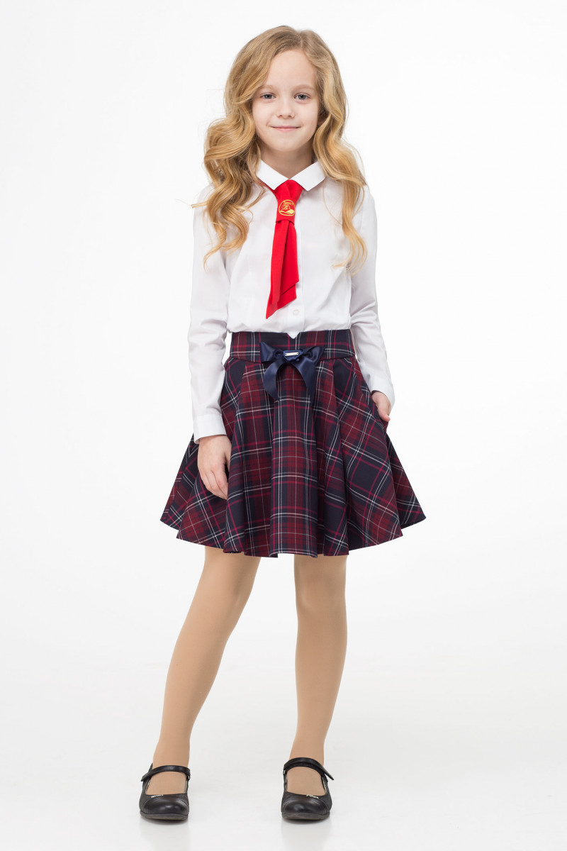 Школьная юбка для девочки из поливискозной ткани с рисунком в клетку. Юбка на притачном поясе, фасона солнце. Передняя часть пояса фигурная, задняя часть пояса на резинке. По переднему полотнищу юбки имеются складки, в боковых швах карманы. Отличный комфортный вариант в школу.