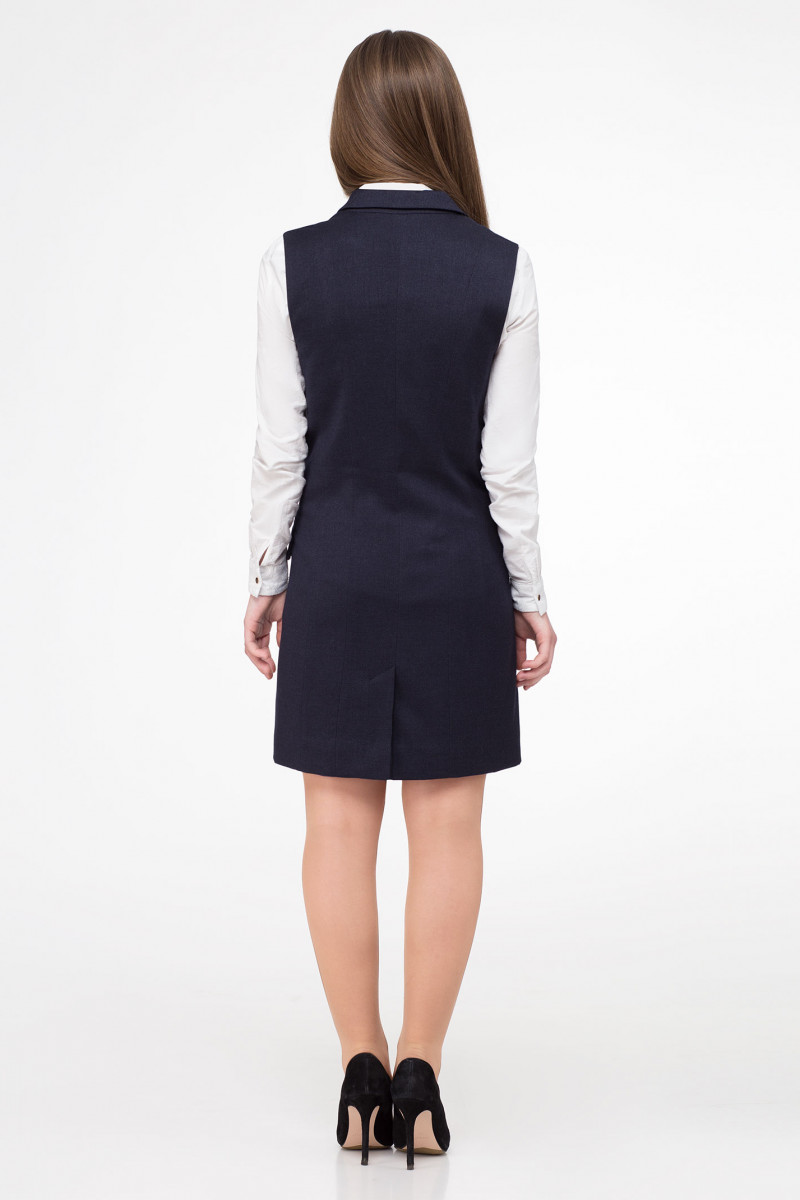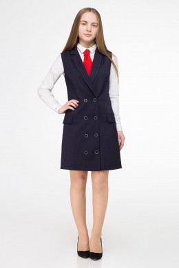 Школьный сарафан для девочки для старшей школьной группы. Сарафан из поливискозной ткани на вискозной подкладки. Сарафан полуприлегающего силуэта, двубортный, со сквозной застежкой по переду на петли и пуговицы. Сарафан с V-образным вырезом горловины, воротник пиджачный с отложными лацканами. По переду и по спинки имеются рельефные швы, которые обеспечивают отличную посадку изделия по фигуре. По переду имеются карманы в рамку с клапанами. Отличный модный вариант для повседневных школьных дней.