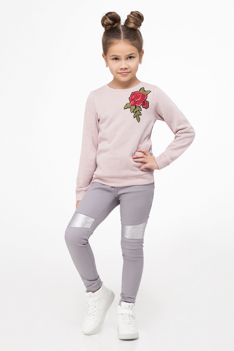 Джемпер для девочки. Джемпер выполнено из хлопкового трикотажного полотна с небольшим блеском.Джемпер прямого силуэта. с длинными рукавами на манжете. Низ джемпера обработан широкой притачной манжетой. Горловина круглая с притачной планкой. Джемпер декорирован яркой вышивкой по переду.