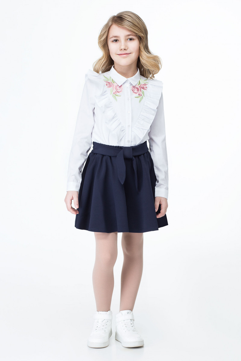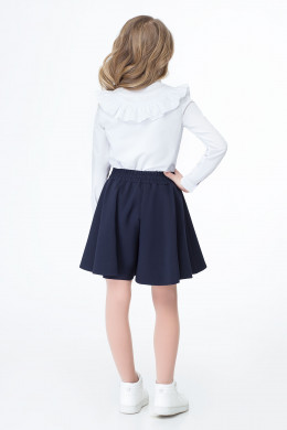 Модные юбка-шорты для девочки выполнены из вискозного трикотажного полотна. Шорты на талии, пояс на резинки. Передняя и задняя часть шорт расширены, что имитируют юбку. По переду декоративный пояс. Комфортные стильные юбка-шорты отличный вариант как для повседневных дней, так и для школьных.