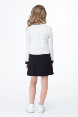 Стильное платье для девочки из трикотажного полотна. Платье расширенного силуэта, с длинными рукавами, со съёмными манжетами на рукавах. Платье отрезное по линии бедер, с центральной застежкой до подреза на петли и пуговицы. Горловина круглая. По переду платье дополнено декоративным бантом. Отличный вариант как в школу, так и для повседневных дней.