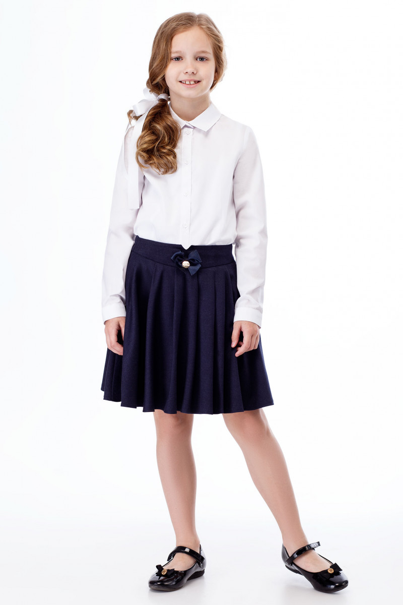Школьная юбка для девочки из поливискозной ткани. Юбка на притачном поясе, фасона солнце. Передняя часть пояса фигурная, задняя часть пояса на резинке с регуляторами по талии. По переднему полотнищу юбки имеются складки, в боковых швах карманы. Юбка на вискозной подкладки. Отличный комфортный вариант в школу.
