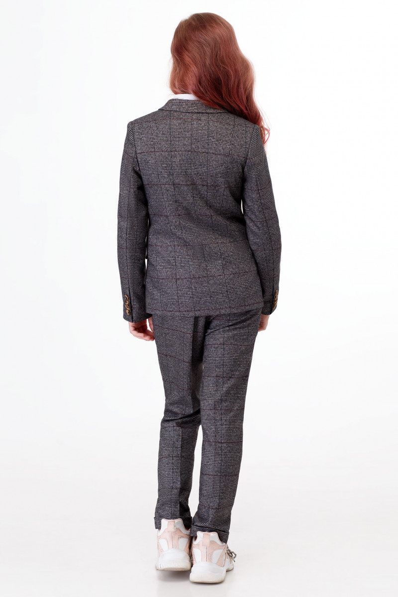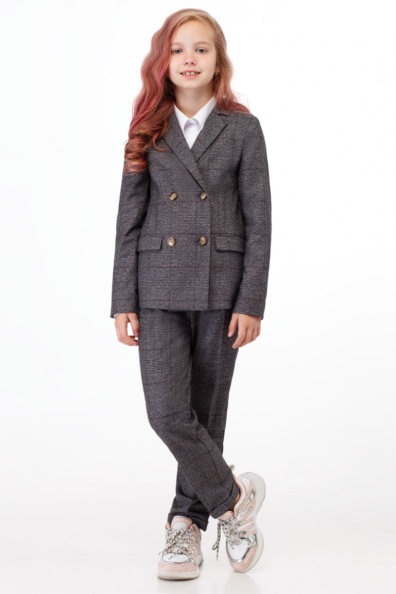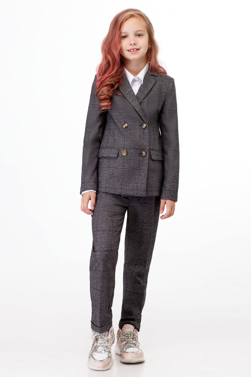 Жакет повседневный для девочки из полувискозной ткани на вискозной подкладки. Жакет полуприлегающего силуэта, с втачными рукавами. Жакет двубортный с застежкой на пуговицы. Детали переда с отрезными бочками, горизонтально расположенными боковыми прорезными карманами с клапаном в рамку и вытачками от разрезов карманов. Рукава двухшовные, локтевые швы заканчиваются шлицами. Воротник пиджачного типа. Такой жакет отлично сочетается как с брюками, так и с юбками, создавая современный образ школьника.