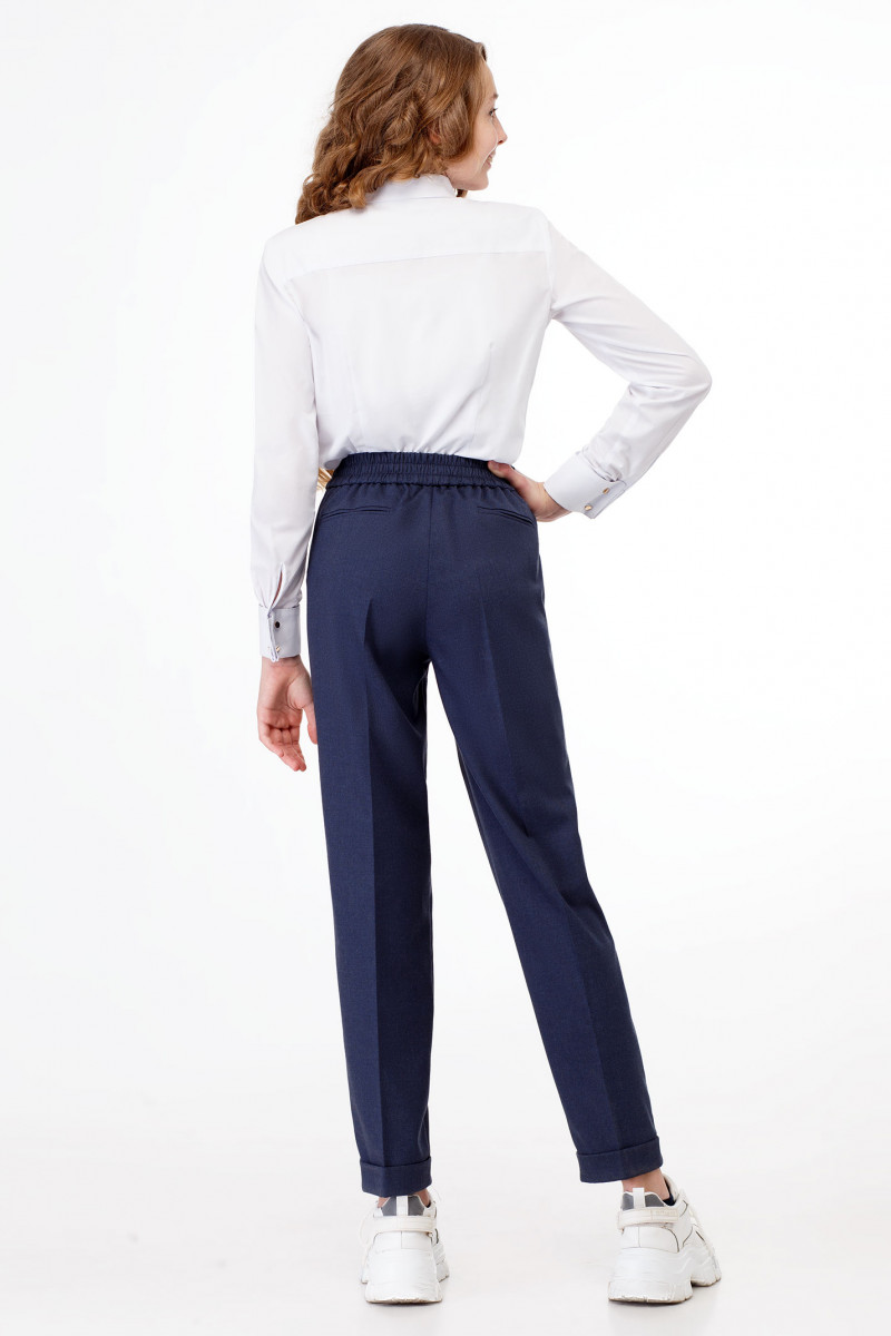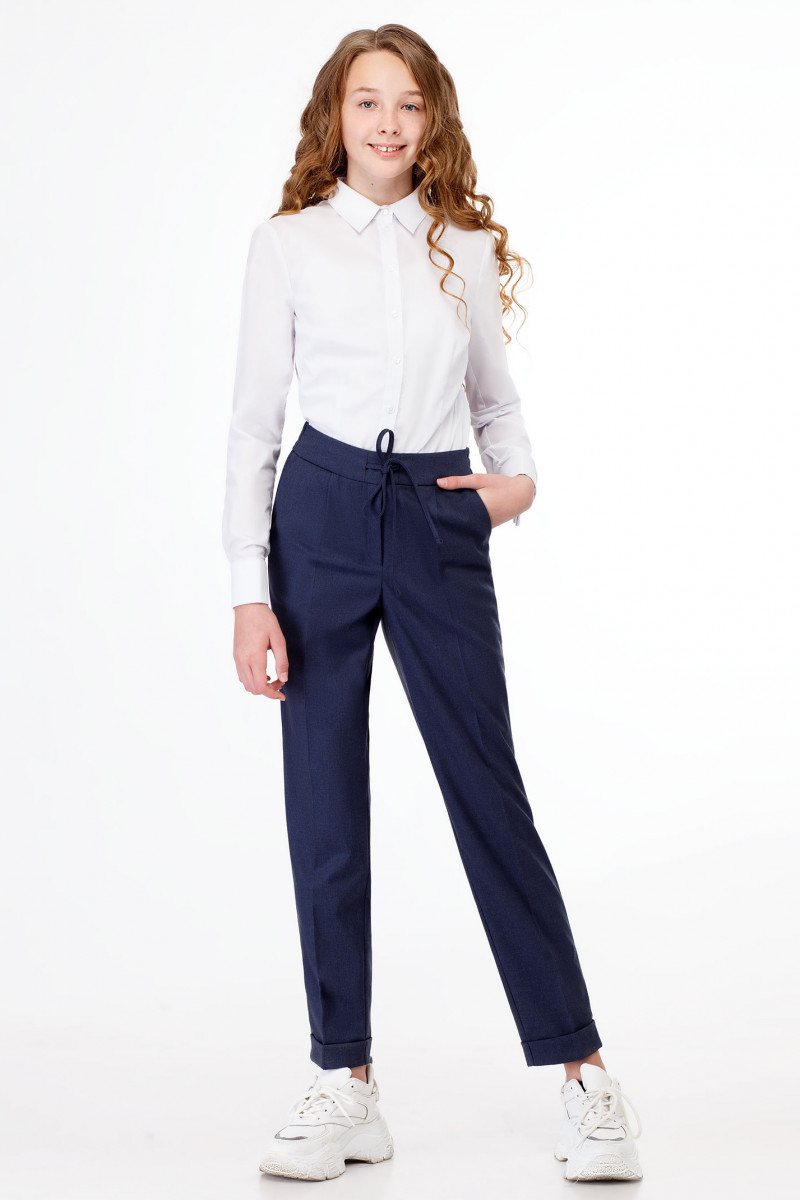 Стильные молодежные брюки для девочки из вискозной ткани. Брюки с застежкой на молнию и крючок по переду. Пояс на резинке с декоративным шнурком. По переду имеются небольшие складочки, идущие от пояса. Брюки чуть заужены к низу, по низу манжеты. По переду брюк карманы. На задних частях брюк карманы в рамку. Отличный вариант как для школы, так и для повседневных дней.