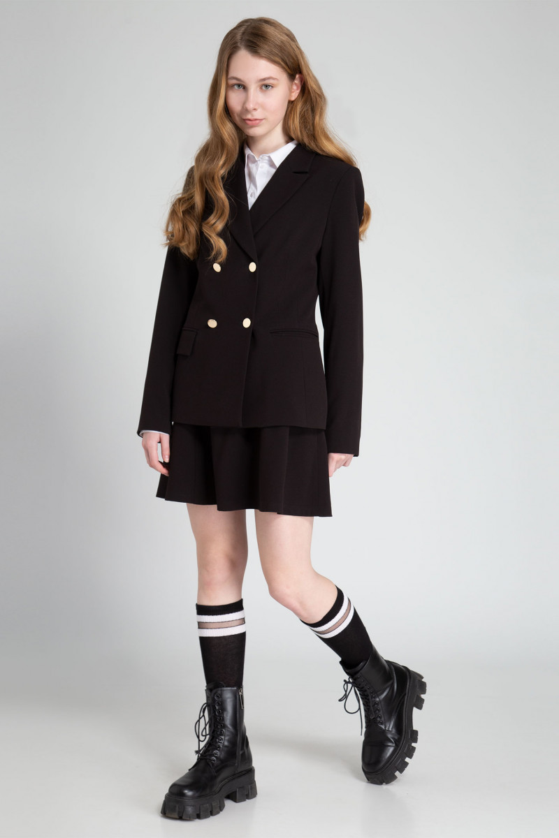 Такой жакет отлично сочетается как с брюками, так и с юбками, создавая современный образ школьника.