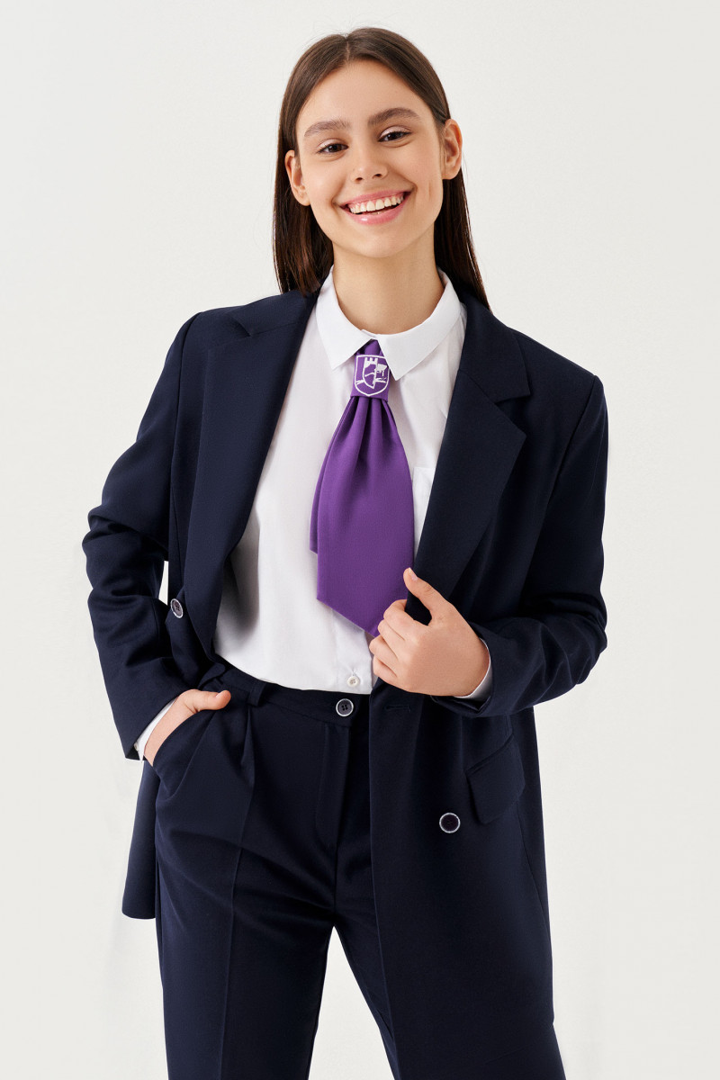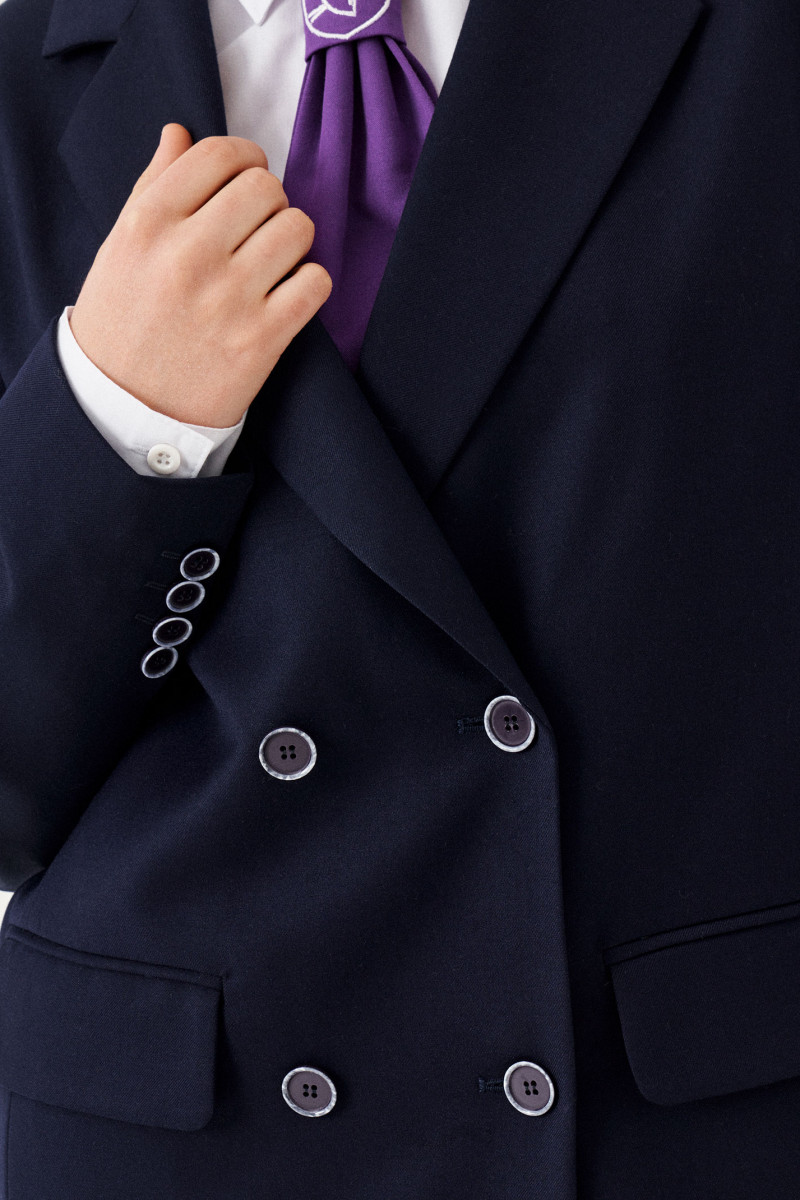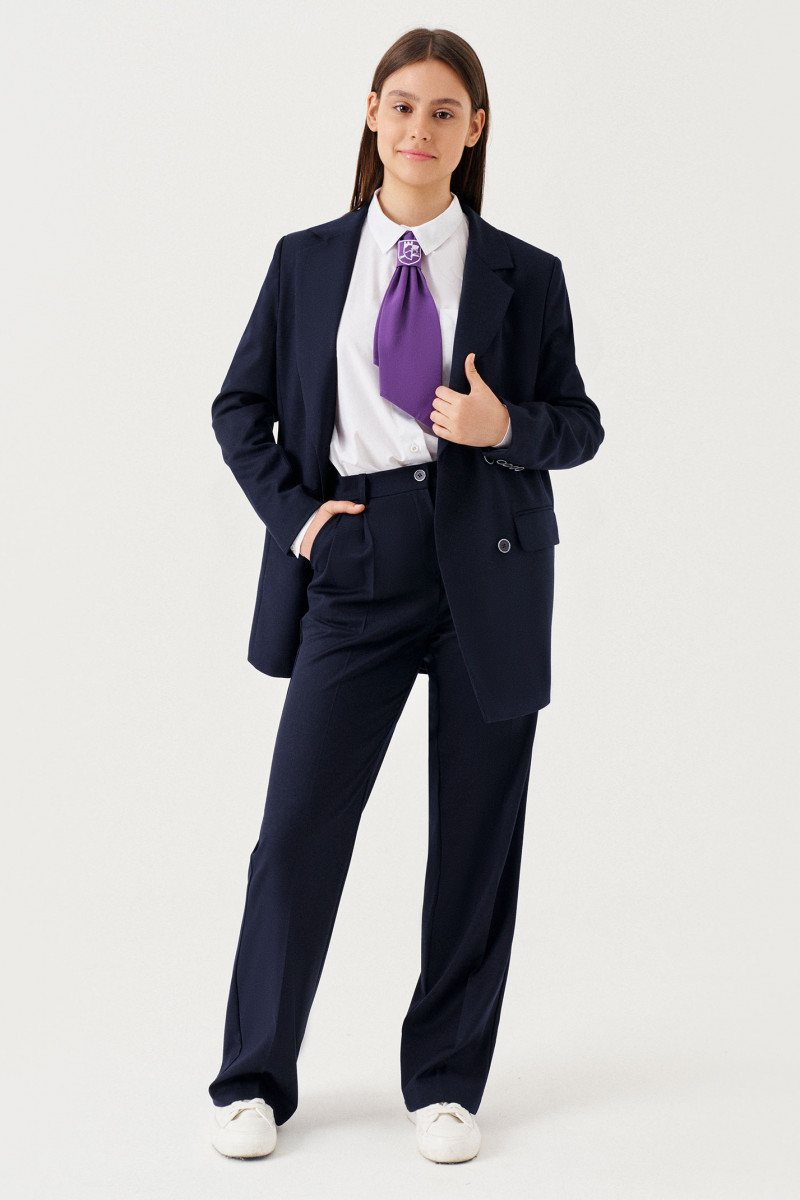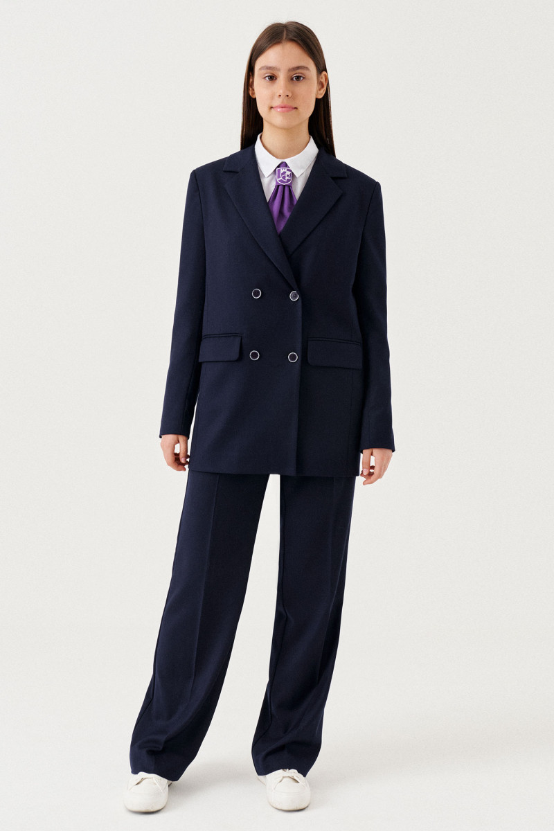 Такой жакет отлично сочетается как с брюками, так и с юбками, создавая современный образ школьника.