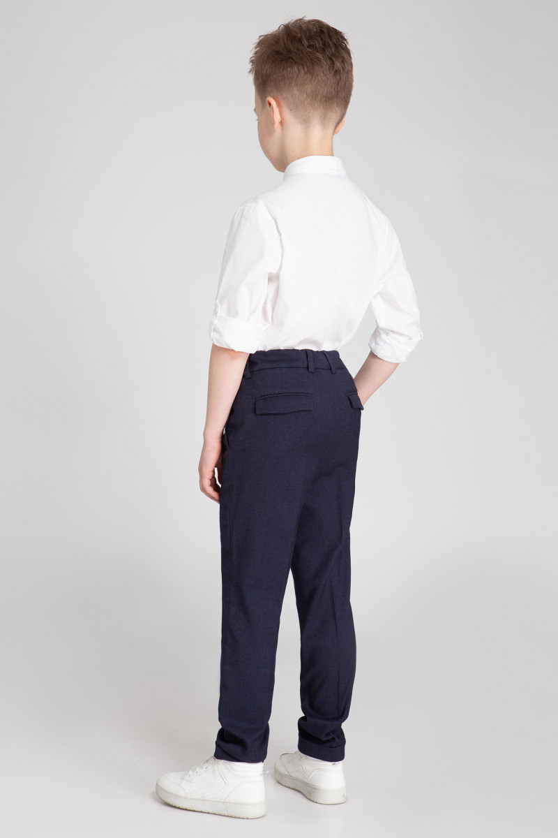 Стильные брюки для мальчика из вискозной ткани с вискозной подкладкой по передним частям брюк.