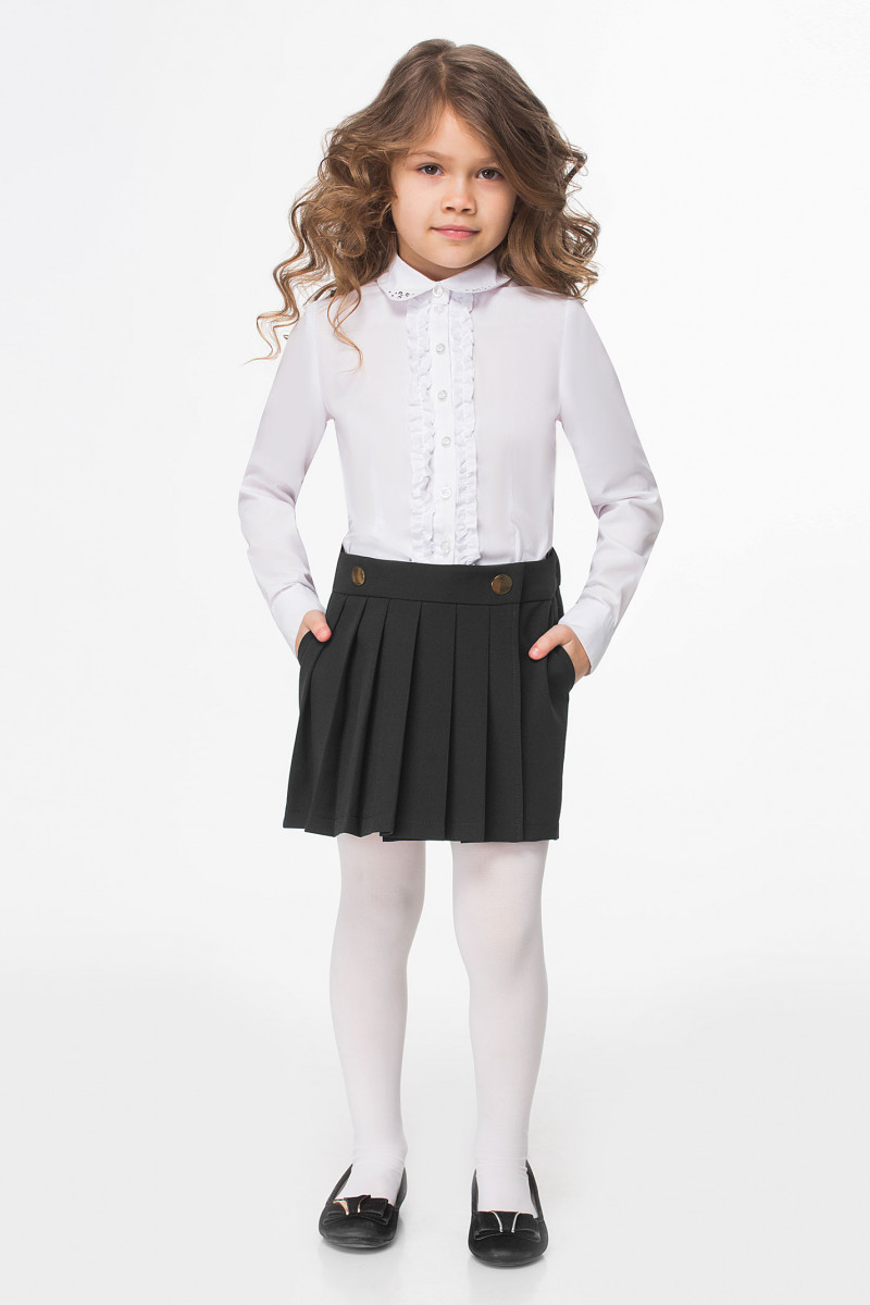 Юбка-шорты для девочки младшего школьного возраста. Модель создано для маленьких леди, которые хотят выглядеть оригинально, и при этом очень комфортно. Юбка-шорты на поясе. Верхняя юбка со складками по переду, боковыми карманами и с застежкой на кнопки. Шорты, которые имеются снизу, прямые на резинке. Стильный и оригинальный вариант для школы.