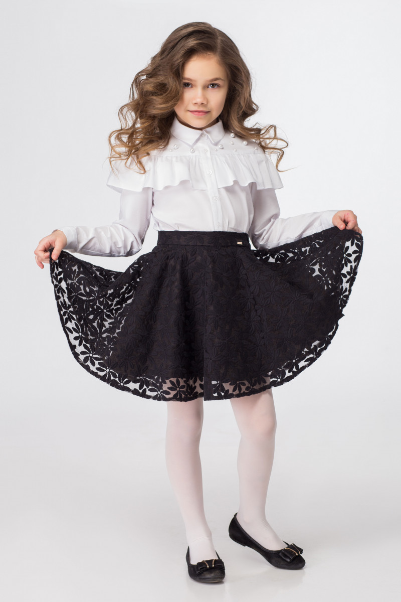 Блузка для девочки повседневная, из смесовой сорочечной ткани.