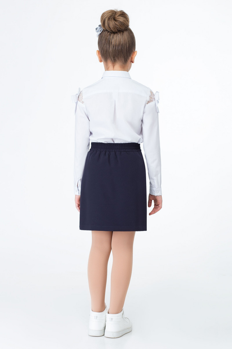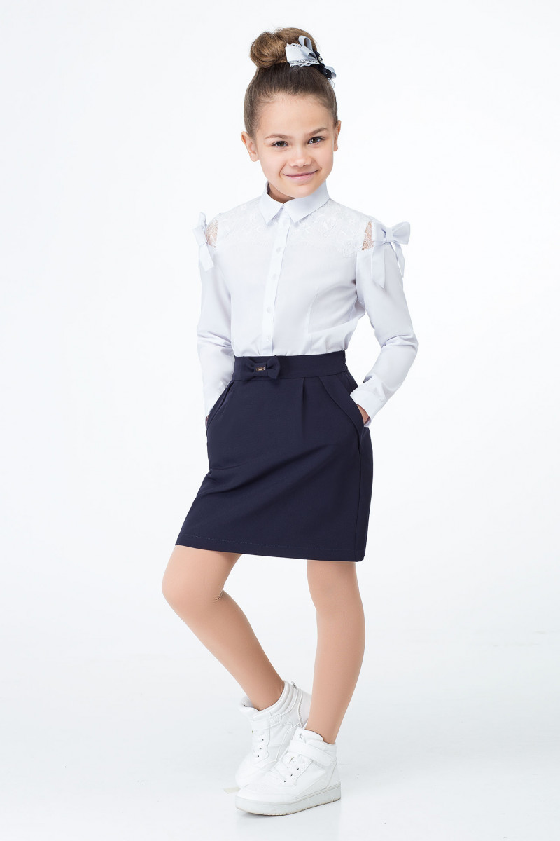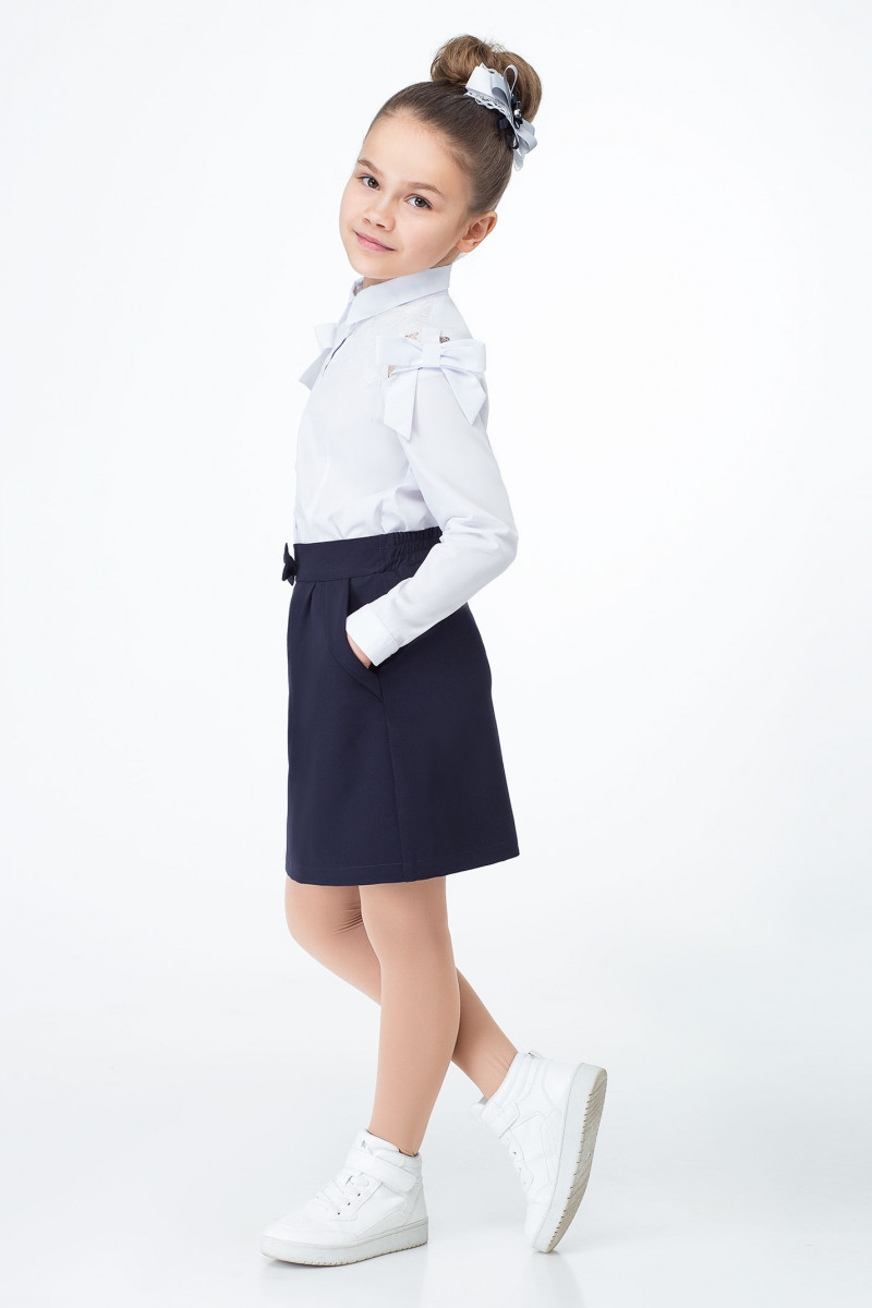 Юбка для девочки младшего школьного возраста. Юбка чуть расширенного силуэта на поясе. По спинки пояс на резинке, что обеспечивает особый комфорт ребенку. Юбка на поливискозной подкладки.По переду юбки имеются боковые карманы и небольшие складочки. Пояс украшен бантом. Такая юбка отлично сочетается с различными блузками, водолазками, жакетами, создавая прекрасный образ для повседневного школьного гардероба.