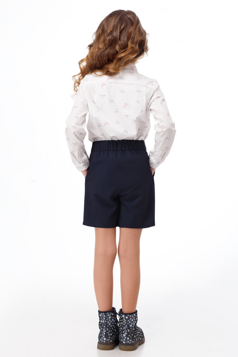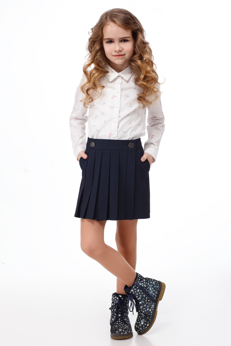 Юбка-шорты для девочки младшего школьного возраста из поли вискозной ткани с рисунком в мелкую клеточку. Модель создано для маленьких леди, которые хотят выглядеть оригинально, и при этом очень комфортно. Юбка-шорты на поясе. Верхняя юбка со складками по переду, боковыми карманами и с застежкой на пуговицы. Шорты, которые имеются снизу, прямые на резинке. Стильный и оригинальный вариант для школы.
