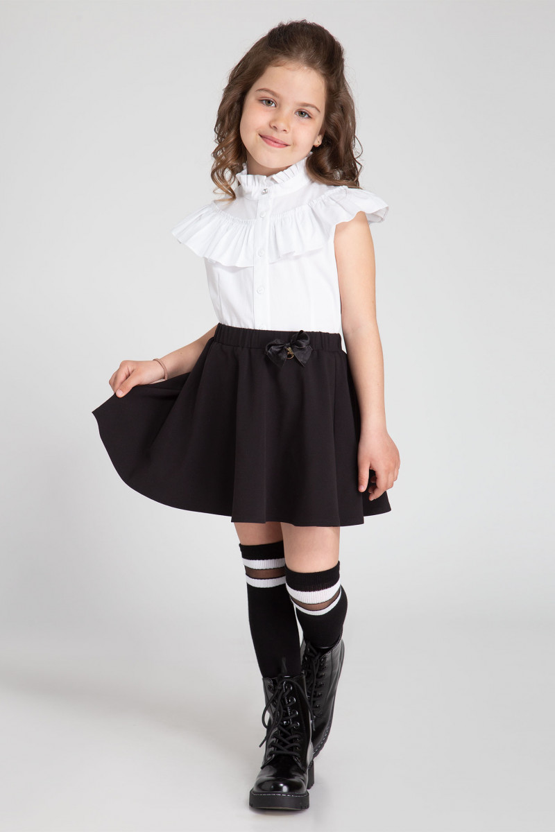 Строгая и в то же время нарядная блузка станет незаменимой частью гардероба маленькой модницы. Подойдет как для торжественных мероприятий, так и для ежедневной носки в школу.