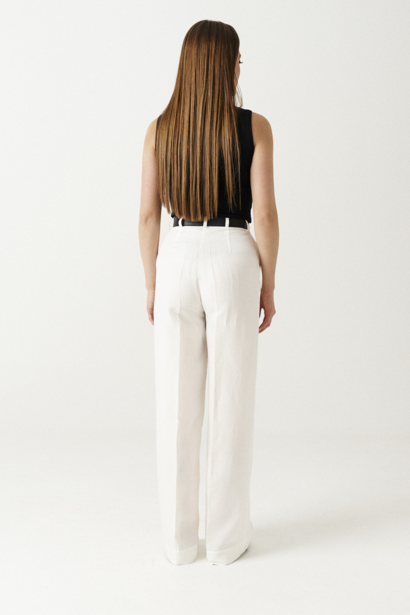 | 46 | Брюки: Высота посадки - 29см, Длина брюк без пояса - 110см, Длина по внутреннему шву - 85.5см, Ширина брючин сверху - 72см, Обхват брюк по низу - 61см, Ширина по бедрам - 54см, Ширина по талии - 38.5см; |