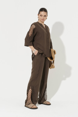 | 50 | Брюки: Высота посадки - 28.5см, Длина брюк без пояса - 108см, Длина по внутреннему шву - 84.5см, Ширина брючин сверху - 75см, Обхват брюк по низу - 62.5см, Ширина по бедрам - 58см, Ширина по талии - 39.5см; |