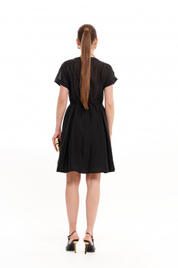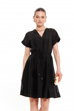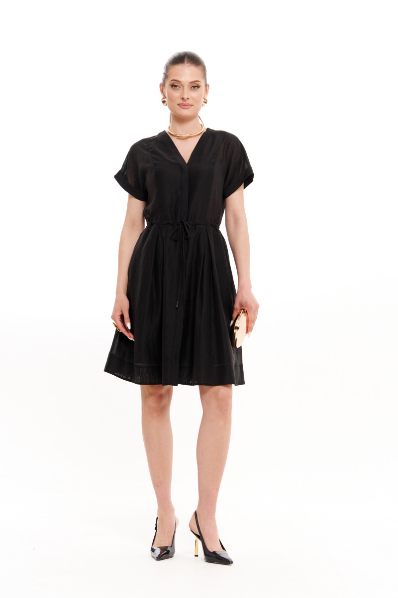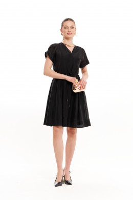 Платье женское из хлопчатобумажной ткани для повседневной носки. Платье полуприлегающего силуэта. Платье отрезное по линии талии со вставленной кулисой по талии. Застежка в платье супатная на обметанные петли и пуговицы. Лиф переда имеет два вертикальных рельефа идущих от линии плеча до отрезной части. Переднее полотнище юбки имеет две встречных складки. Лиф спинки имеет два вертикальных рельефа идущих от линии плеча до отрезной части. Заднее полотнище юбки имеет две встречных складки. В боковом шве располагается потайной карман. Юбка расширенная. Горловина V-образная. Рукава цельнокроеные, короткие, низ рукава обработан отлетной манжетой. Платье на натуральной вискозной подкладке. Стильное и воздушное платье, которое никого не оставит равнодушным. В данном платье вы будете обворожительны, его преимуществом является то, что оно отлично будет сидеть на любой фигуре.