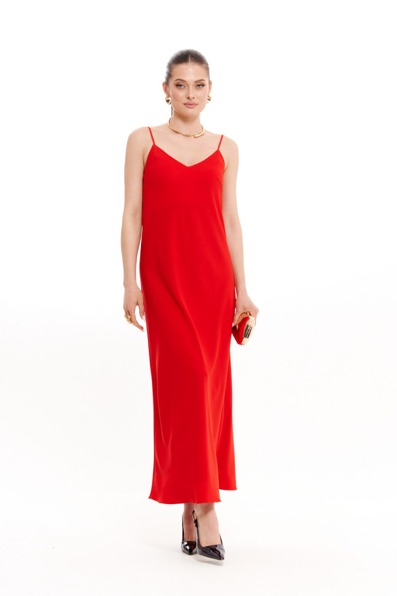 Платье женское из струящейся ткани прямого силуэта для повседневной носки. Платье чуть расширено к низу. Перед имеет две нагрудные вытачки. Горловина переда и спинки V-образная. Платье на бретелях. В бретели вставлена специальная тесьма, что не дает им возможность растягиваться. Платье на вискозной подкладке. Очень нежная и изящная модель платья, в данной модели вы обязательно будете выглядеть великолепно. А за счет натуральной подкладки вы сможете чувствовать себя комфортно.