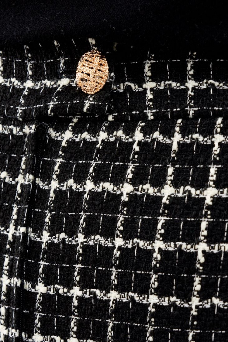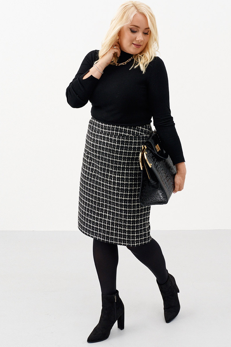 Трендовая женская твидовая юбка бренда Ketty - один из самых популярных предметов женской одежды. Она является стильным и модным выбором на любой сезон, идеальным для создания множества уникальных образов.Она имеет среднюю длину, что позволяет носить ее в различных вариациях. Клетка делает ее стильной и популярной, а черно-белая цветовая гамма подходит для любого образа и случая. Этот классический узор всегда в моде и прекрасно подходит для повседневного ношения. Юбка офисная имеет разрез на задней части, который добавляет женственности и облегчает движение. Высокая посадка и прямой силуэт юбки делают ее подходящей для деловых и офисных образов. Также, юбка может быть использована в качестве вечернего и праздничного наряда, если сочетать ее с яркой блузкой и высокими каблуками. Юбка-карандаш - это классика жанра, которая подходит для любого возраста и стиля. Она делает ваш образ стильным и элегантным, и является отличным выбором для любого повода. Если вы хотите добавить стильный и модный элемент в свой гардероб, то эта трендовая юбка в клетку - отличный выбор.