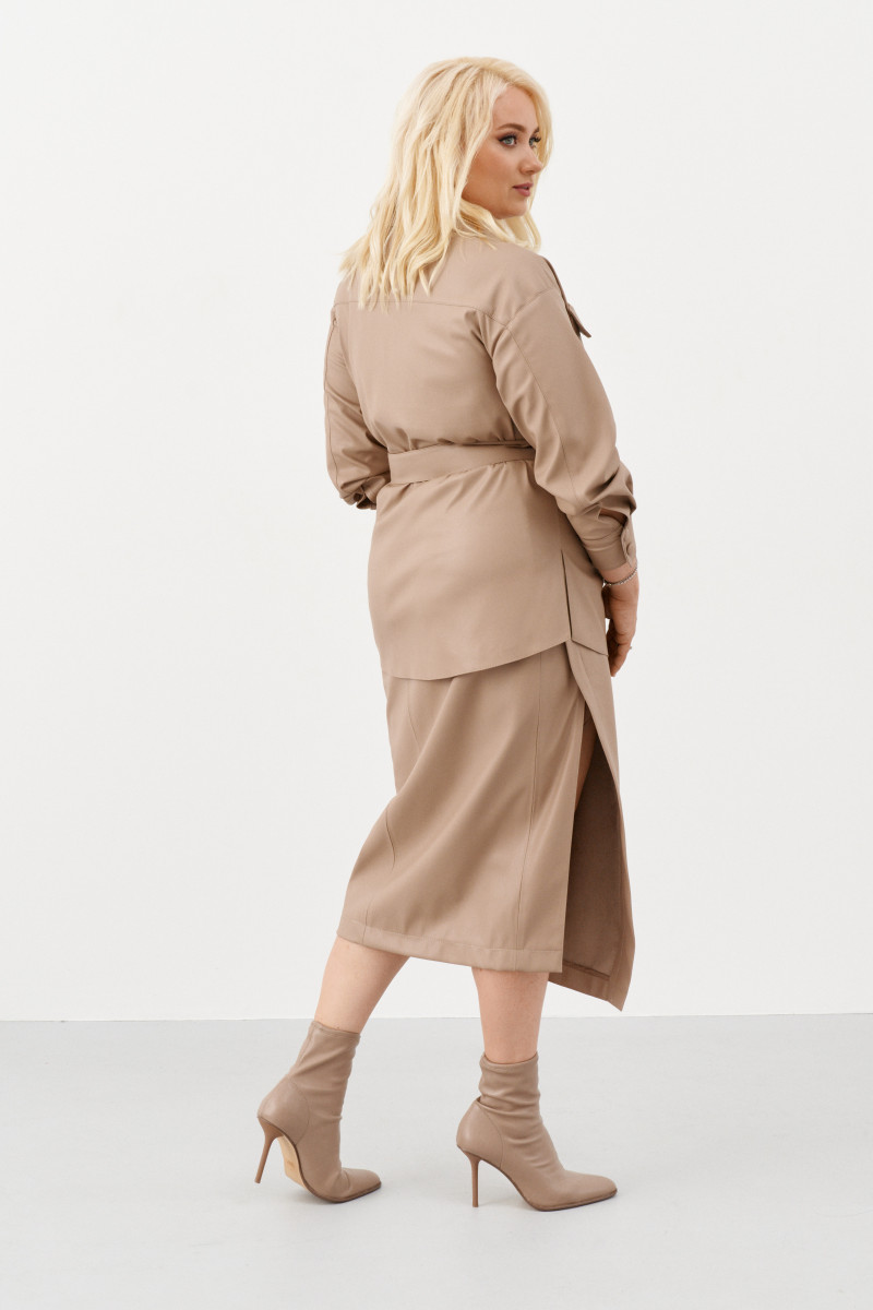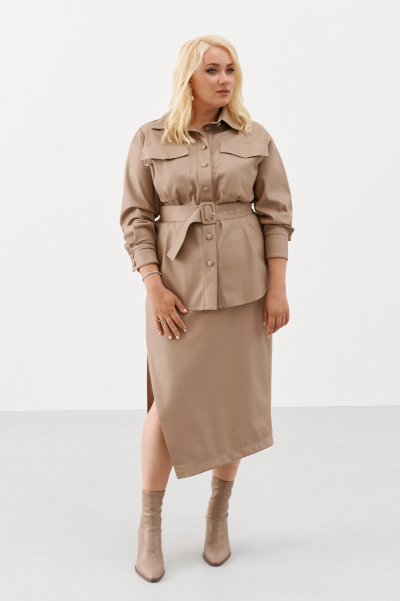 Юбка женская из эко кожи для повседневной носки. Верхний срез юбки обработан обтачкой. Облегающая юбка карандаш имеет на переднем полотнище разрез сбоку по ноге. В юбке имеется потайная застежка-молния в среднем шве заднего полотнища юбки. Юбка на поливискозной подкладке. Длинна юбки миди. Очень красивая юбка, в которой вы будете чувствовать себя комфортно.