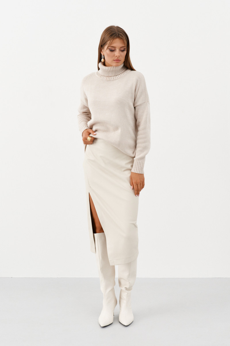 Юбка женская из эко кожи для повседневной носки. Верхний срез юбки обработан обтачкой. Облегающая юбка карандаш имеет на переднем полотнище разрез сбоку по ноге. В юбке имеется потайная застежка-молния в среднем шве заднего полотнища юбки. Юбка на поливискозной подкладке. Длинна юбки миди. Очень красивая юбка, в которой вы будете чувствовать себя комфортно.