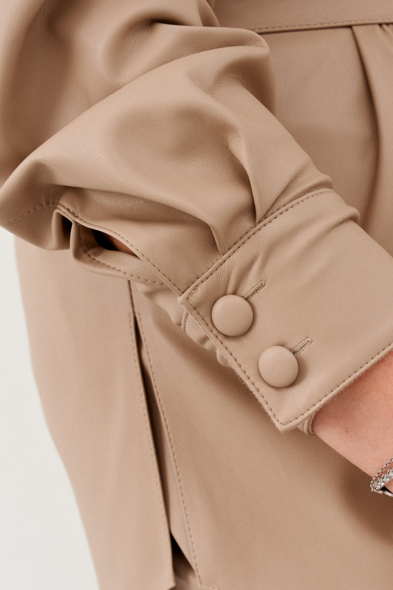 Жакет рубашка, удлиненная от бренда Ketty из мягкой эко кожи. Отложной воротник, накладные карманы на груди. Кожаная рубашка женская, свободного кроя в комплекте со съемным поясом. У Вас не возникнут вопросы с чем носить кожаную рубашку - стилизуйте ее застегнутой или нараспашку в качестве легкого жакета. В комплекте идёт съемный пояс из основной ткани.