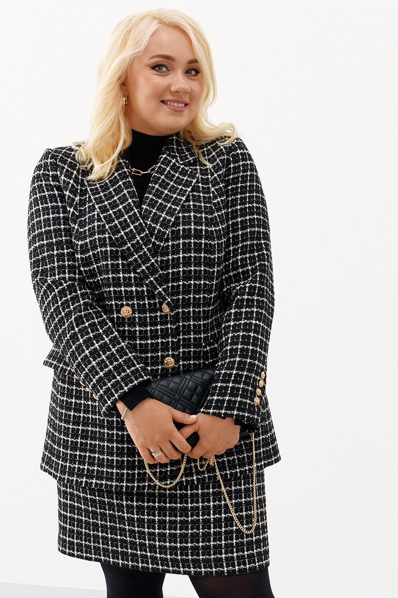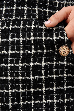 Трендовая женская твидовая юбка бренда Ketty - один из самых популярных предметов женской одежды. Она является стильным и модным выбором на любой сезон, идеальным для создания множества уникальных образов. Короткая юбка выше колена идеально садится по фигуре, подчеркивает достоинства и скрывает недостатки. Клетка делает ее стильной и популярной, а черно-белая цветовая гамма подходит для любого образа и случая. Этот классический узор всегда в моде и прекрасно подходит для повседневного ношения. Акцентные карманы и премируем фурнитура делают изделие нарядным. Высокая посадка и силуэт трапецией делают юбку подходящей для деловых, офисных и повседневных образов. Юбка делает ваш образ стильным и элегантным, и является отличным выбором для любого повода. Если вы хотите добавить стильный и модный элемент в свой гардероб, то эта трендовая юбка в клетку - отличный выбор.