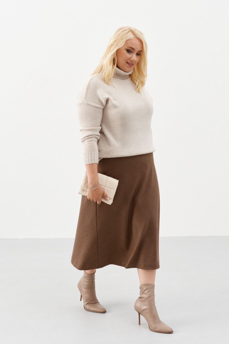 Модная юбка трапеция от бренда Ketty, длина миди - тренд сезона. Юбка в гусиную лапку застегивается на потайную молнию в боковом шве. Крой соответствует стандартному размеру и обеспечивает идеальную посадку по фигуре. Подойдет на любой случай и отлично впишется в любой гардероб. Данная модель женской юбки солнце подходит на сезоны: весна, осень, зима. Идеально подойдёт для прогулок, работы, отдыха, свиданий, офиса, праздников и для повседневной носки. В женской юбке вы будете чувствовать себя уверенно и комфортно! В комплекте идёт съемный пояс с пряжкой из основной ткани.