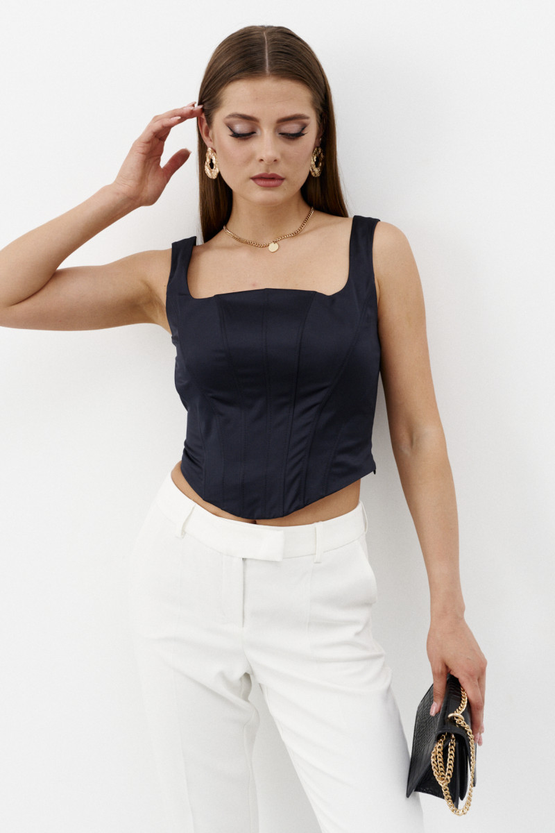 Уникальный корсет с необычным кроем зоны декольте. Он изготовлен из качественного материала, который приятен на ощупь и идеально облегает фигуру. Застёжка на потайную молнию в боковом шве. Корсет имеет декоративные подрезы, для жесткости вставлены регилины, который держат форму и создают женственный силуэт. Низ фигурный, низ переда слегка прогнут. Горловина прямоугольный со скругленными углами. Данный корсет идеально сочетать с пиджаком, модными брюками палаццо, юбкой с высокой посадкой, а также поверх с прозрачными блузами, туниками. корсет вечерний может использоваться в качестве детали вечерней и праздничной одежды, если дополнить образ элегантными украшениями на шею и нарядным поясом. Нарядный корсет подойдёт для любого торжества, на день рождения, выпускной, свадьбу. В нем вы будете выглядеть непревзойденно!