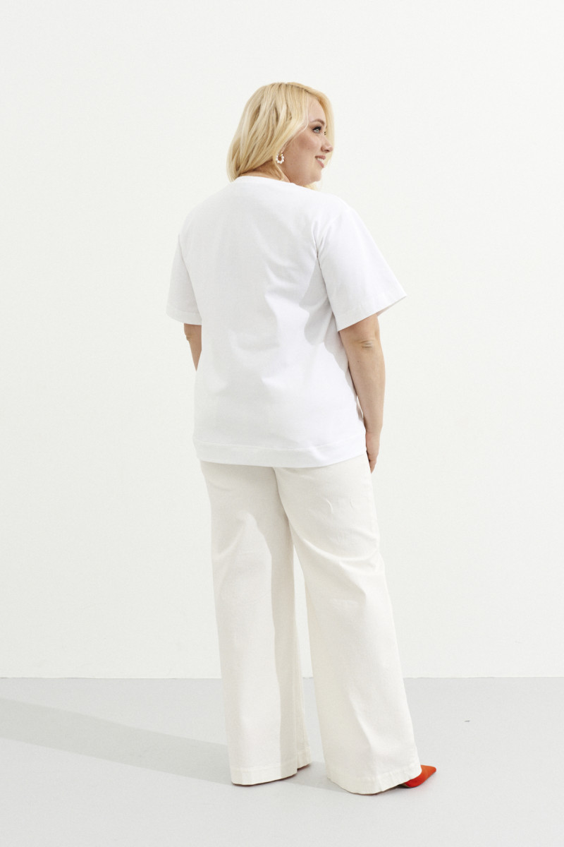 Базовая футболка бренда Ketty из высококачественного хлопкового трикотажа. Модель имеет свободную посадку. Декор в виде сердечка придаст джемперу неповторимость. Наша футболка свободного кроя подойдет для любой фигуры, как для высоких, так и для девушек и женщин среднего роста, под любой образ и стиль. Крой футболки - свободный, модный, легкий оверсайз - очень модно и стильно. Футболку с вышивкой можно носить с любой одеждой - джинсами, юбкой, костюмом. Прямой крой и дышащий материал делают её удобной и комфортной для повседневной носки, для поездок и для прогулок! Подойдёт как в офис, так и как элемент вечернего гардероба!