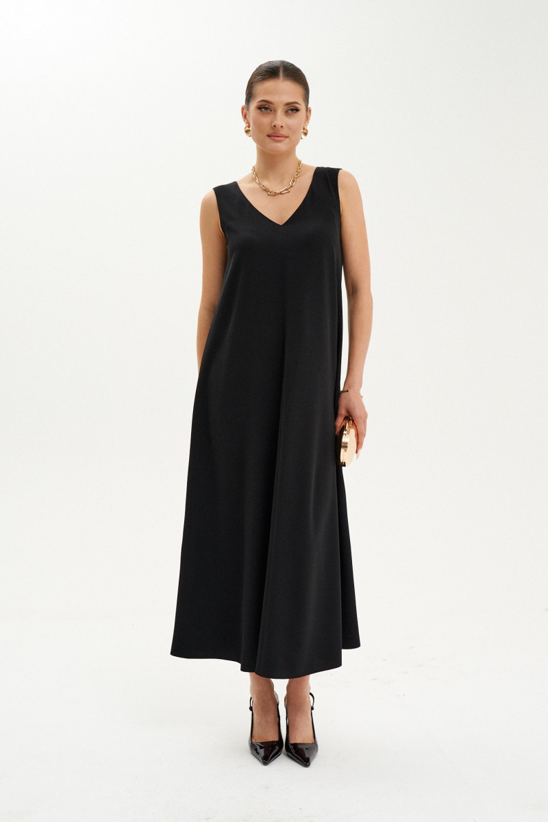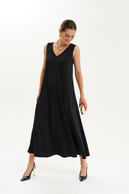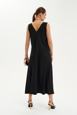 Платье из струящейся ткани для повседневной и торжественной носки. Платье, чуть расширенное к низу. Перед и спинка со средним швом. Горловина по переду и по спинке V-образная, обработана обтачкой. Платье без рукавов. Длина изделия макси. Красивое и стильное платье, которое будет отлично смотреться на любой фигуре.