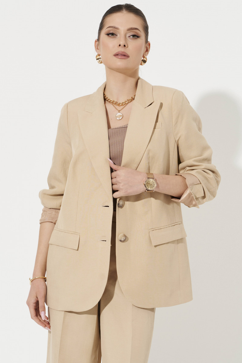 Стильный двубортный жакет с роговыми пуговицами бренда Ketty покорит вас своим полуприталенным и актуальным кроем. Жакет выполнен из высококачественной льняной ткани. Жакет удлиненный двубортный с прорезными карманами с клапанами. Рукав длинный, двухшовный. На рукавах имеются декоративные шлицы, которые дополняют изящные роговые пуговицы. Жакет на поливискозной подкладке. Данный жакет пошит из льняной ткани. Льняная ткань обладает гигроскопичностью, воздухопроницаемостью и подойдёт для жарких дней. Жакет с лёгкостью впишется в любой гардероб и станет вашим бесспорным фаворитом. Посадка добавит силуэту пиджака изящества, а образу элегантности. Такой классический жакет, но с ярким акцентом на пуговицы прекрасно подойдет девушкам для вечерних образов, в офис, на работу, на свидание, на прогулку.