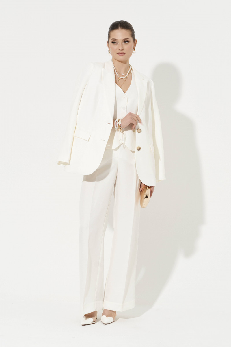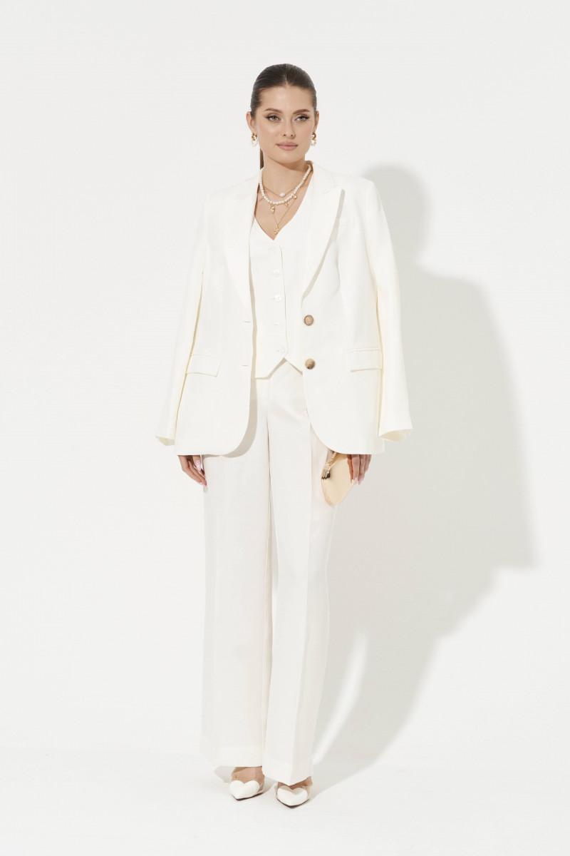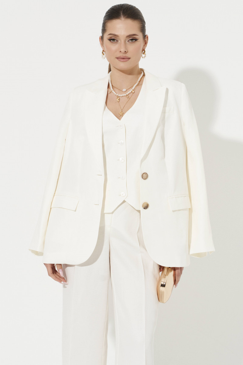 Стильный двубортный жакет с роговыми пуговицами бренда Ketty покорит вас своим полуприталенным и актуальным кроем. Жакет выполнен из высококачественной льняной ткани. Жакет удлиненный двубортный с прорезными карманами с клапанами. Рукав длинный, двухшовный. На рукавах имеются декоративные шлицы, которые дополняют изящные роговые пуговицы. Жакет на поливискозной подкладке. Данный жакет пошит из льняной ткани. Льняная ткань обладает гигроскопичностью, воздухопроницаемостью и подойдёт для жарких дней. Жакет с лёгкостью впишется в любой гардероб и станет вашим бесспорным фаворитом. Посадка добавит силуэту пиджака изящества, а образу элегантности. Такой классический жакет, но с ярким акцентом на пуговицы прекрасно подойдет девушкам для вечерних образов, в офис, на работу, на свидание, на прогулку.
