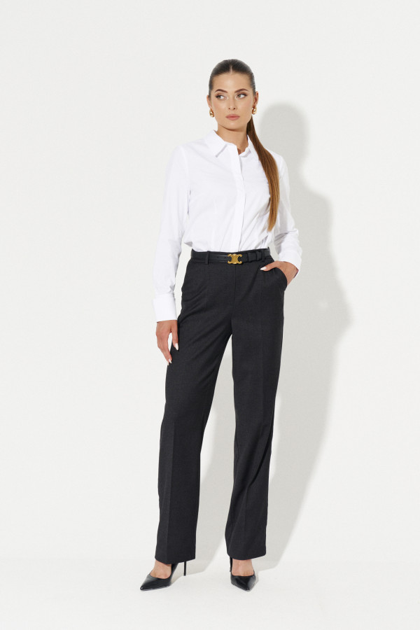 Блузка женская из смесовой ткани с добавлением льна для повседневной носки. Блузка прямого силуэта. Застежка в блузке центральная бортовая на обметанные петли и пуговицы. Горловина обработана рубашечным воротником с отрезной стойкой. Линия плеча чуть спущена. Рукава втачные длинной чуть выше локтя, низ рукава обработан отлётной манжетой. Легкая и очень стильная блузка, которая будет давать настроение на каждый день. Данная блузка станет не заменимой вещью в вашем гардеробе, она обязательно покорит вас своей чудесной посадкой.