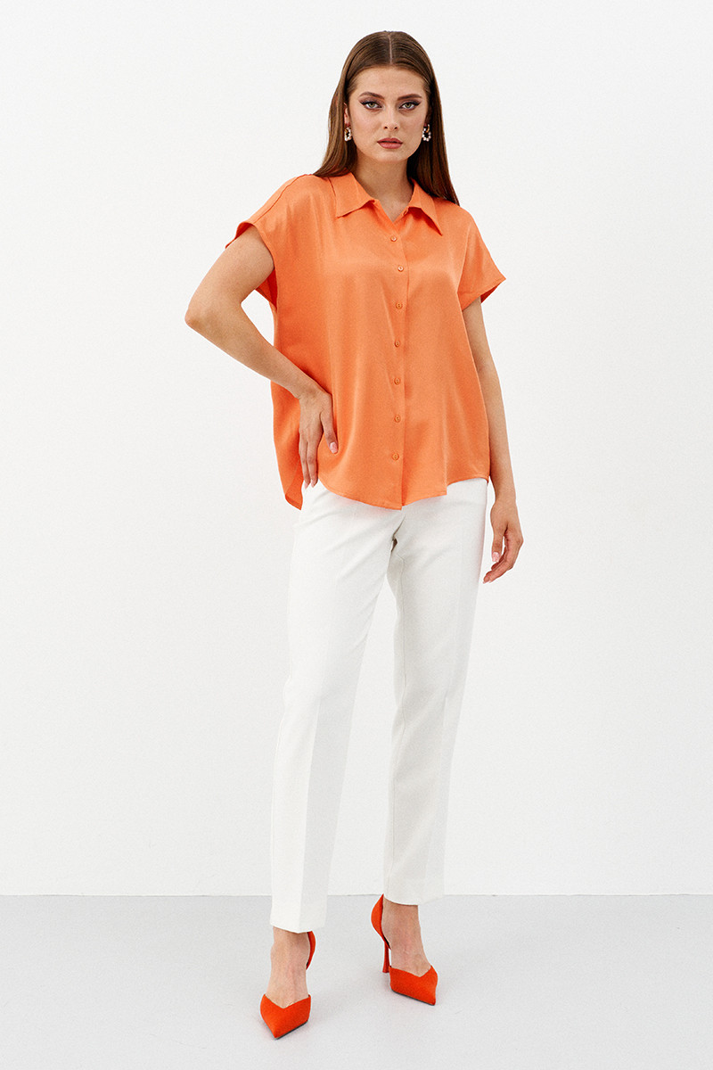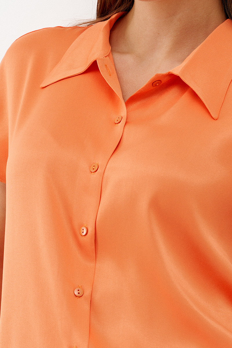 Лаконичная базовая блузка из 100% вискозы с модным сатиновым переплетением. Блузка подойдет как для классического офисного стиля, так и для более праздничных мероприятий. Вискоза - это натуральный материал, который обеспечивает комфорт и легкость в носке. Блеск в ткани добавляет блузке изысканности и элегантности. Центральная сквозная застежка на пуговицы делает блузку удобной в носке и позволяет регулировать глубину выреза. Воротник придает блузке формальность и строгость, а отсутствие рукавов и спущенное плечо делают ее более свободной и легкой. Эта блузка станет отличным выбором для тех, кто ищет универсальную одежду для различных ситуаций. Отличный нарядный вариант для жарких офисных дней!
