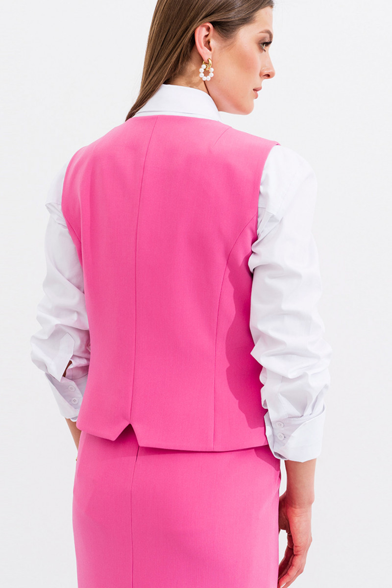 Жилет женский в классическом стиле бренда Ketty - современная база женского гардероба. Классический жилет выполнен из костюмной ткани с V-образным вырезом, полуприлегающего кроя, подходит для образов в офис, в университет, в школу, на каждый день. Жилетка короткая на пуговицах имеет подклад из вискозы, ее можно надевать под пиджак как первый слой (тренд сезона), под кардиган, а также сочетать с шелковыми топами, блузками женскими, водолазками, рубашками. Дополни жилеткой классическую прямую юбку, юбку мини, женские прямые брюки или брюки палаццо и даже джинсы!