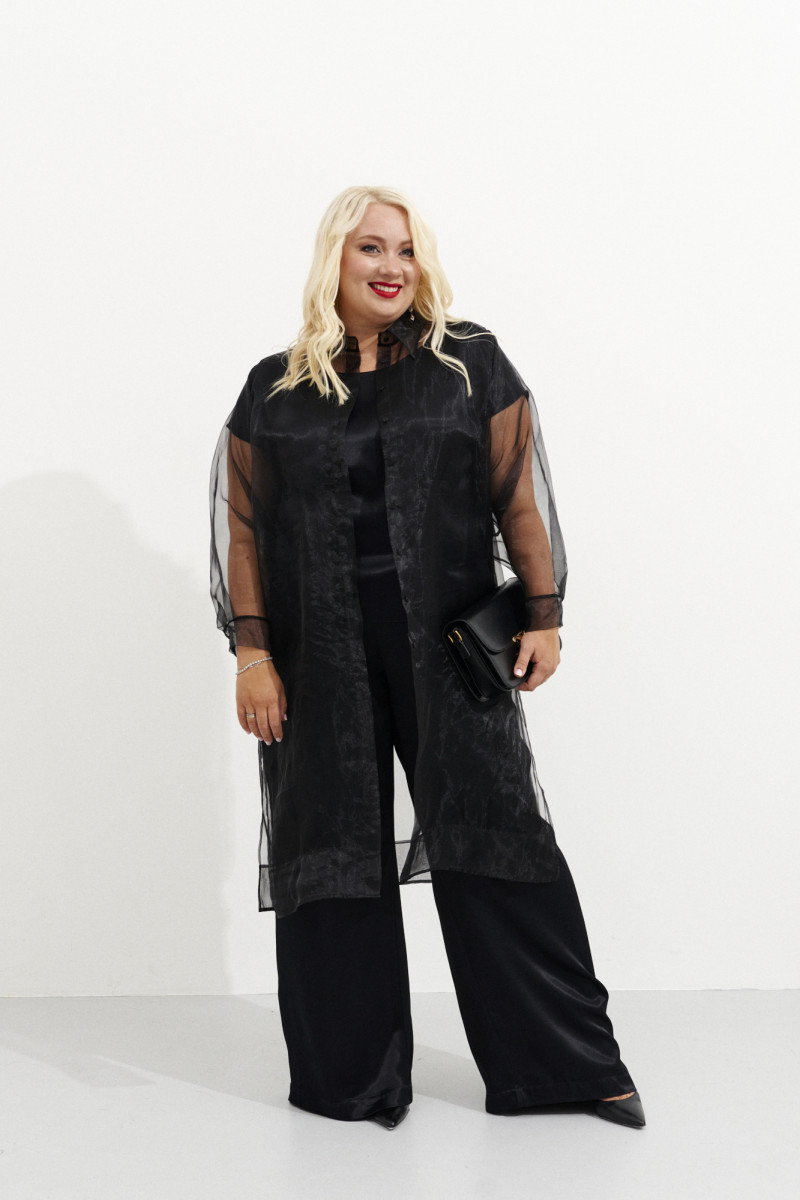 | 46 | Блузка: Длина изделия - 110см, Длина рукава - 60см, Обхват шеи - 46см, Ширина плеча - 14.2см, Ширина по бедрам - 60см, Ширина по груди - 59см, Ширина рукава - 23.7см; |