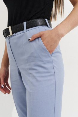 Брюки женские из поливискозной ткани для повседневной носки. Брюки чуть заужены к низу. Верхний срез брюк обработан притачным поясом с застежкой на одну обметанную петлю и одну пуговицу, так же имеется застежка на тесьму молнию в среднем шве брюк. В брюках имеются шлевки, что дает возможность носить их по ремень. Задняя часть брюк имеет две талиевые вытачки и два прорезных кармана в рамку с двумя обтачками. В боковом шве имеется карман с подкройным бочком. Стильные брючки, которые отлично будут подходить и сидеть на любой фигуре. В данных брюках вы будете очаровывать всех своим прекрасным видом.